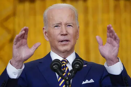 The president said his “guess” is Russia may move further but he believes President Vladimir Putin doesn’t want full-blown war. He declared Russia would pay a “dear price” if Putin launches a military incursion.
