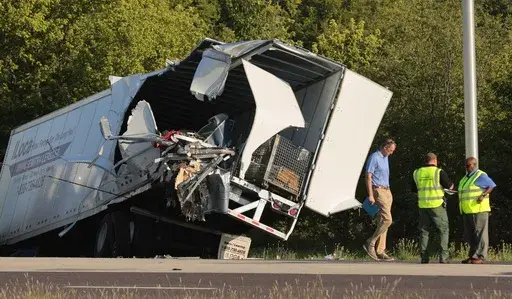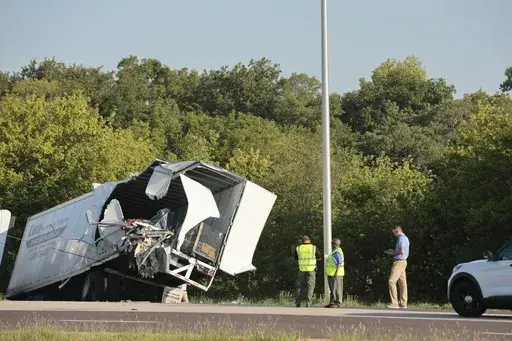 Photos and video from the scene showed the side of the bus peeled open and its roof crumpled. A second tractor-trailer appears to have made contact with the right rear of the bus while a third tractor-trailer appears to have crashed into the rear of that second semi.