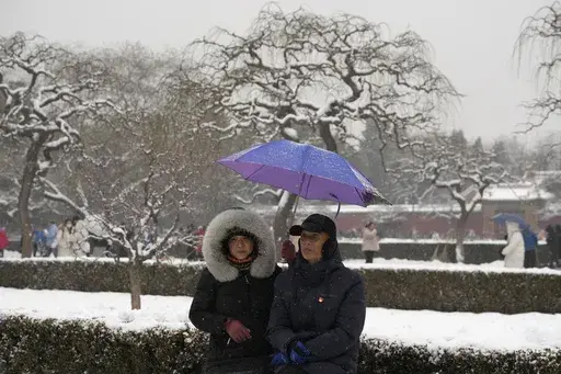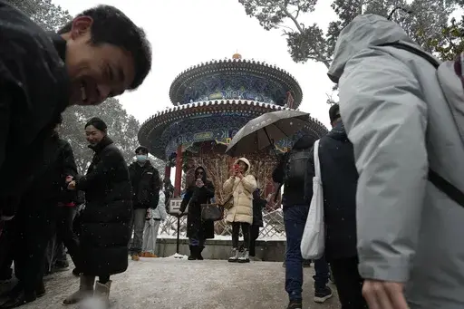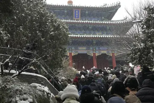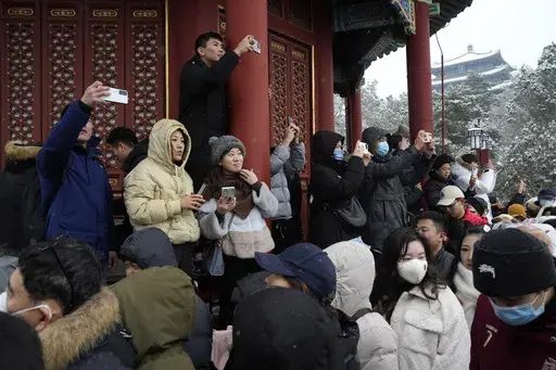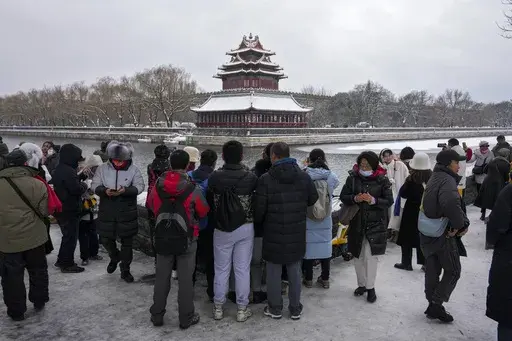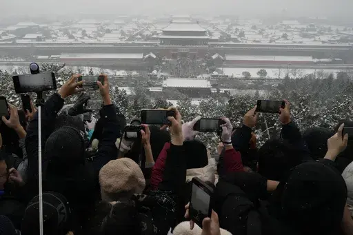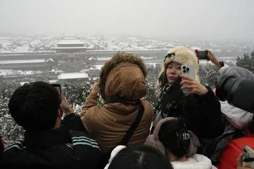 BEIJING (AP) — Throngs of people in down parkas and boots climbed a hill that overlooks the Forbidden City this week to jostle with others trying to get a shot of the snow-covered roofs of the former imperial palace.