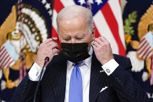 WASHINGTON (AP) — President Joe Biden called the new coronavirus variant omicron a cause for concern but “not a cause for panic" Monday and said he was not considering any widespread U.S. lockdown. He urged Americans anew to get fully vaccinated, including booster shots, and return to face masks indoors in public settings to slow any spread.