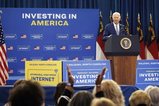 RALEIGH, N.C. (AP) — President Joe Biden on Thursday unveiled $82 million for North Carolina to help connect 16,000 new households and businesses to high-speed internet, delivering an election-year pitch about policies he says are "just getting started” at improving the United States.