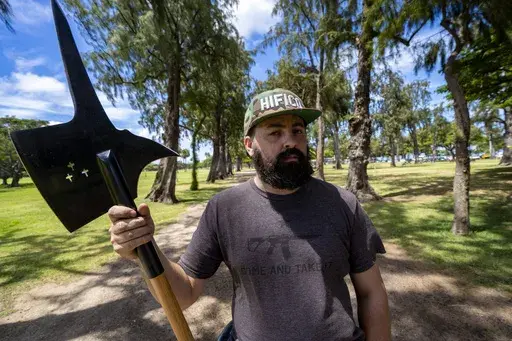 HONOLULU (AP) — Hawaii's tourist hotspot of Waikiki is known for bikinis, shopping and surfboards. But resident Andrew Roberts has recently introduced a different item on evening walks through his neighborhood: a long-poled battle-axe.