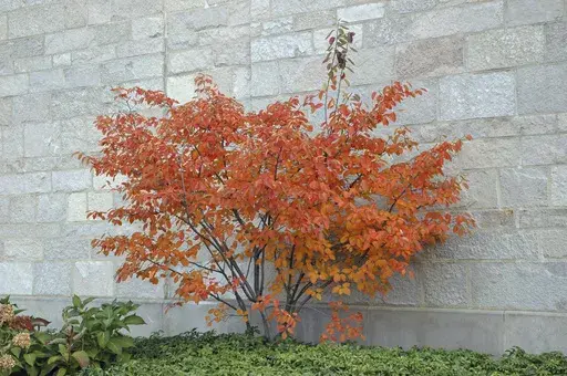 All native serviceberries provide nice fall color, but Amelanchier x grandiflora ‘Autumn Brilliance,’ a hybrid of A. arborea and A. laevis, both eastern U.S. natives, really steals the show with striking, brilliant orange-red foliage. Small white flowers bloom in spring, followed by edible purple-black berries in summer. Plant it in full sun to part shade in zones 4-9.