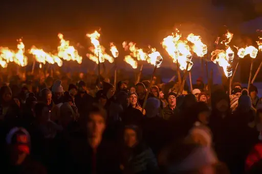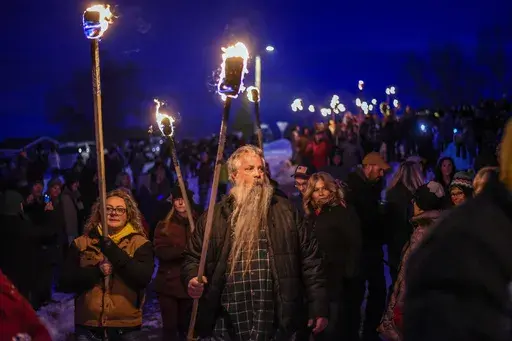 RAPID CITY, S.D. (AP) — In what's become an annual winter tradition, hundreds of people carrying torches set fire to a giant wooden beetle effigy in Custer, South Dakota, to raise awareness of the destructive impact of the mountain pine beetle on forest land in the Black Hills.