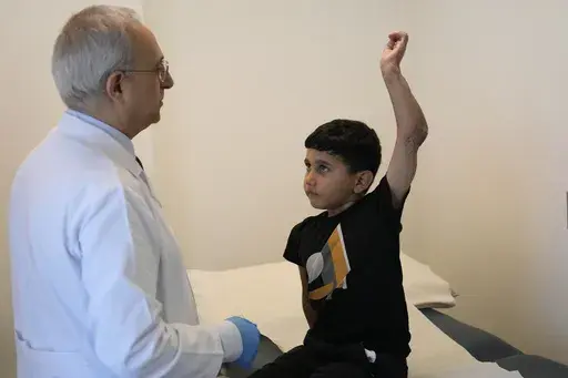 But the final operation — a muscle transfer and surgery to repair the damaged nerves to his arm — is on hold.
