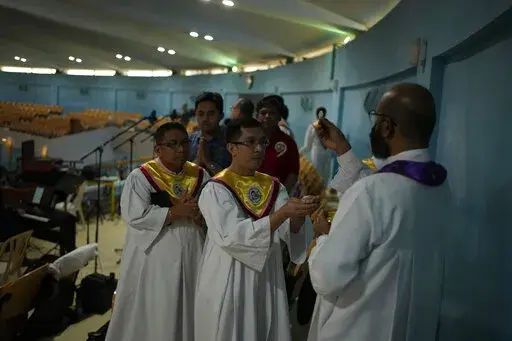 DOHA, Qatar (AP) — Hymns echo through the spacious, blue-walled church. The congregants listen to the Gospel and the homily. They kneel, eyes closed and hands clasped in prayer or palms turned skyward. They line up to receive Communion as a choir belts out: “Lord, for my sake, teach me to take one day at a time.”