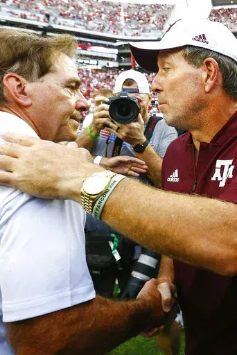 And just think — these guys will be on the same field Oct. 8, when Saban's Crimson Tide hosts Fisher's Aggies.