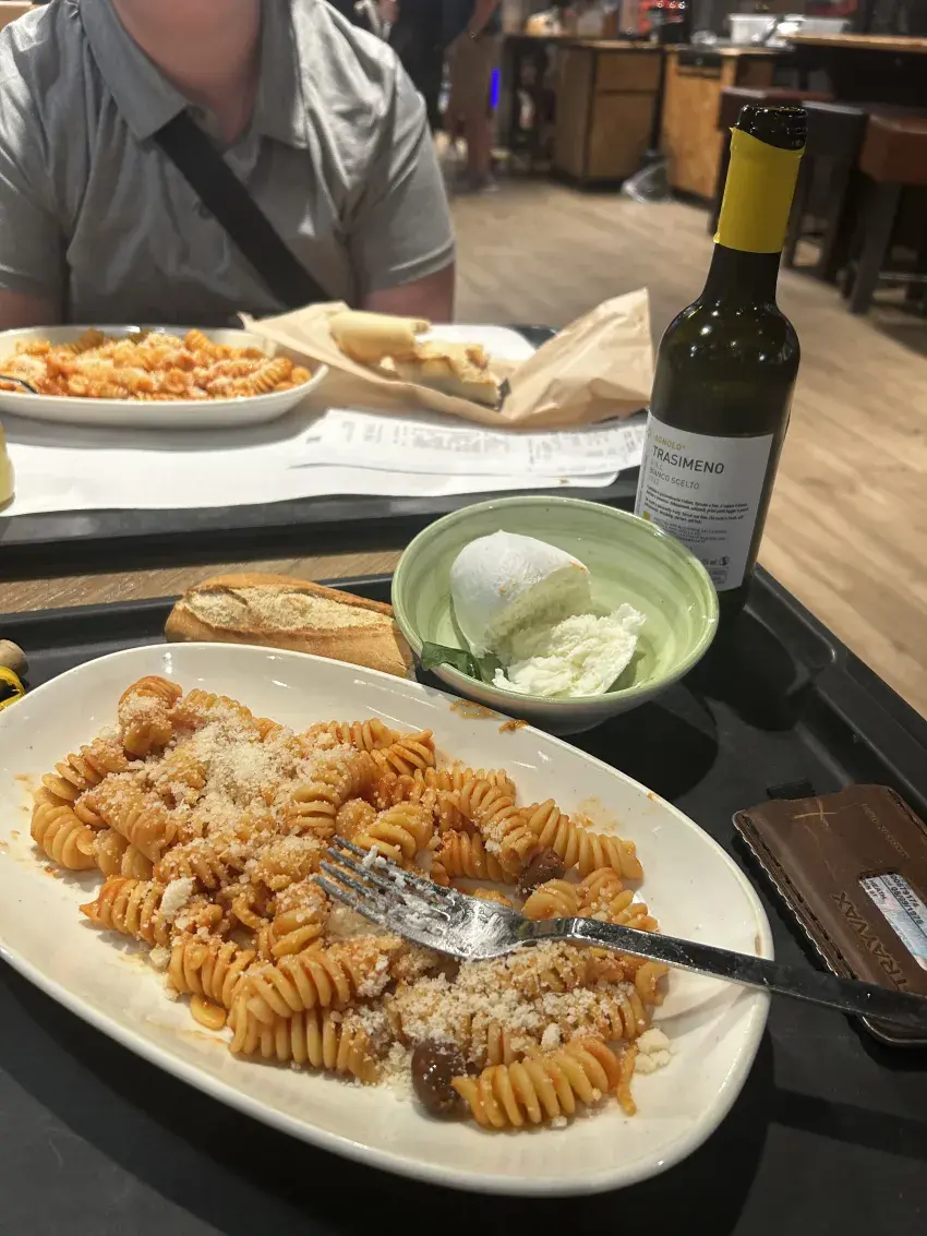 Along the way, we stopped at the finest gas station dining room outside of a Rick’s Express. It was a wonderful buffet of penne pasta, bread and wine.