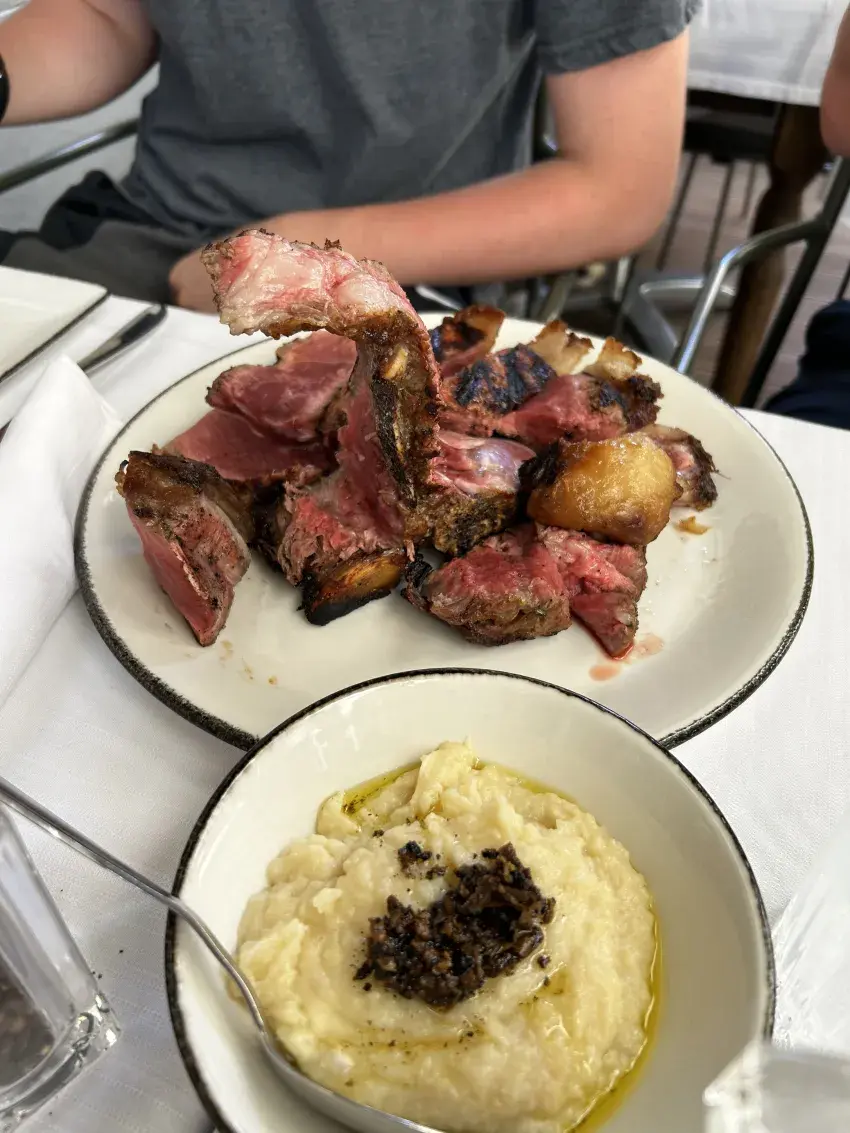Canon and I ate a wonderful lunch in a street-side restaurant. The guys with us ordered a Florentine Steak which is about 1.5 times as thick as a T-Bone for Two from Doe’s Eat Place.
