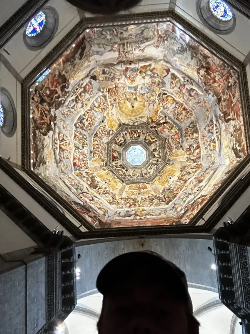 We then joined up with a couple of other folks and got in line to tour the Duomo. It’s vast. I think two St. Joseph’s Catholic Churches could fit on top of each other under the dome.