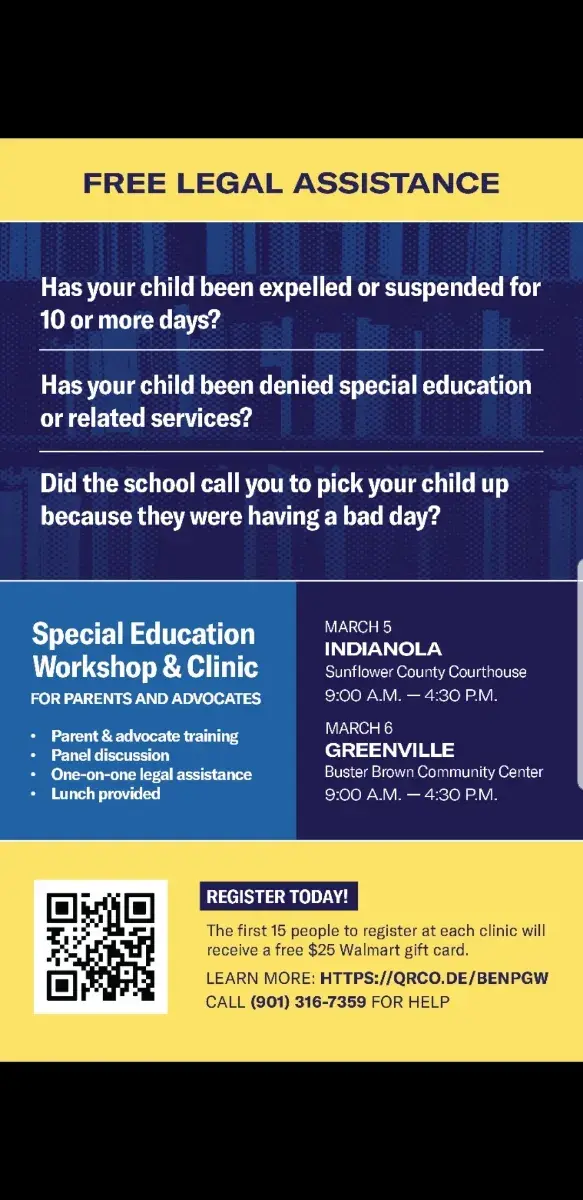 Come to the Parent & advocate training, Panel discussion, One-on-one legal assistance, and stay for the lunch provided.