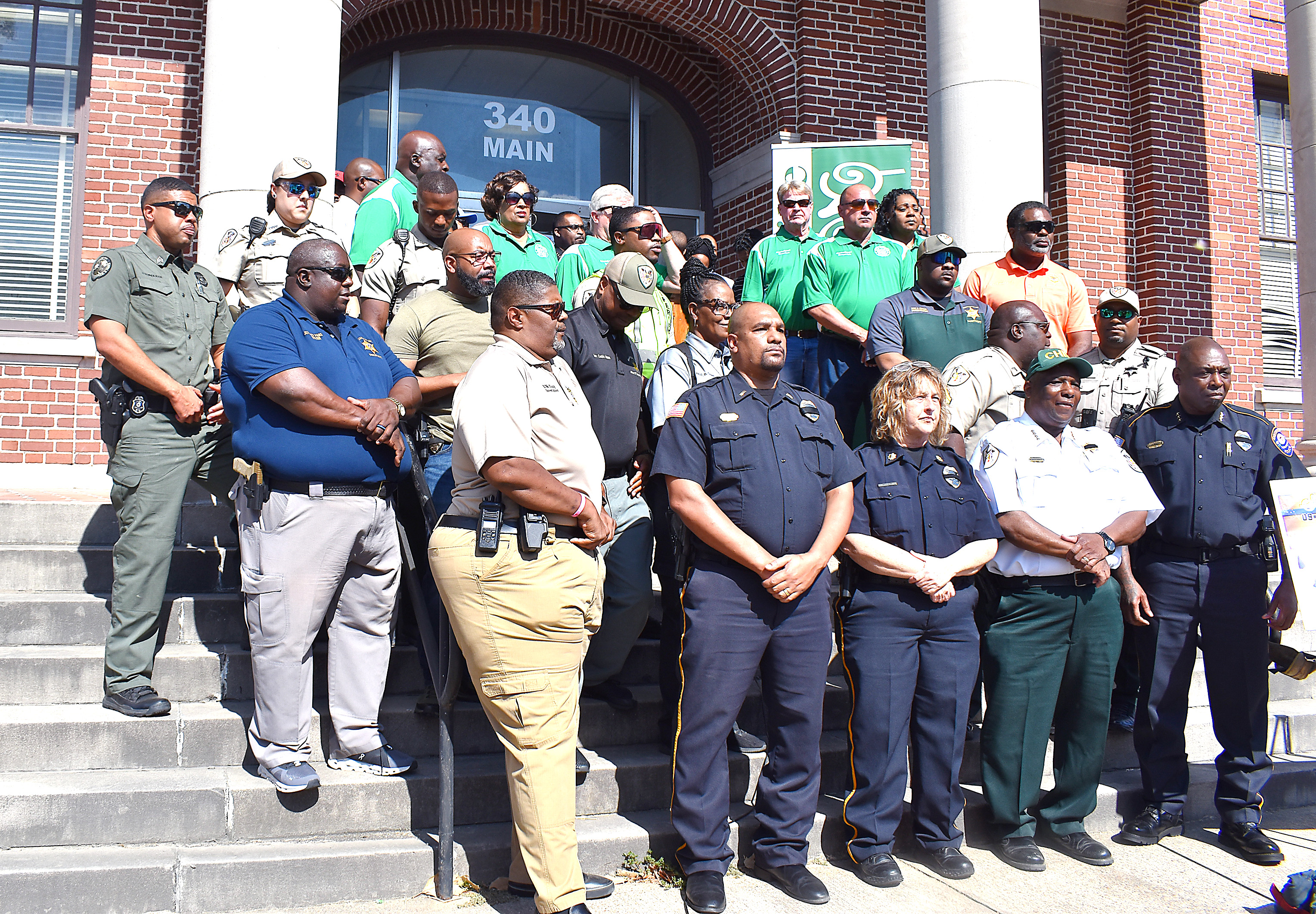 The mother, father and 3-year-old son of Stewart joined Simmons, along with Chief Marcus Turner Sr., Washington County Sheriff Milton Gaston and several other law enforcement officers as he addressed those in attendance.