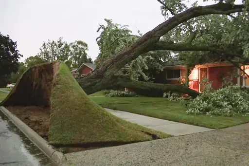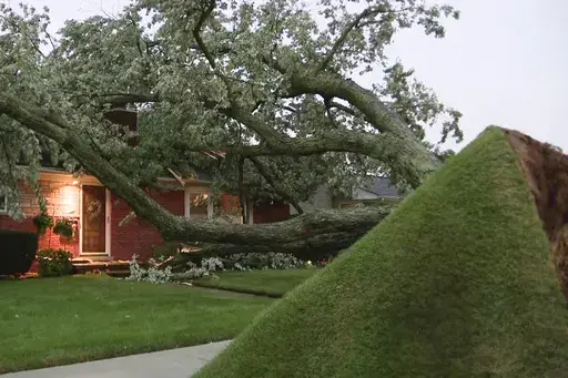 ROYAL OAK, Mich. (AP) — Crews for two of Michigan's largest utilities were working to restore power Wednesday to more than 300,000 homes and businesses left in the dark amid hot, muggy conditions after severe storms toppled trees and snapped power poles.