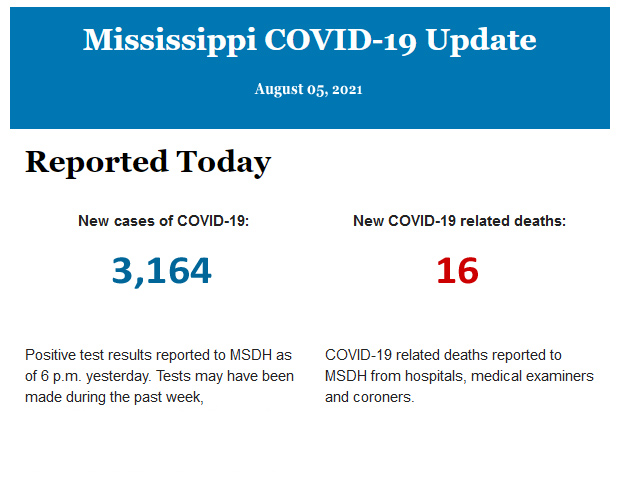 Listed below is the daily COVID-19 update for the state of Mississippi.