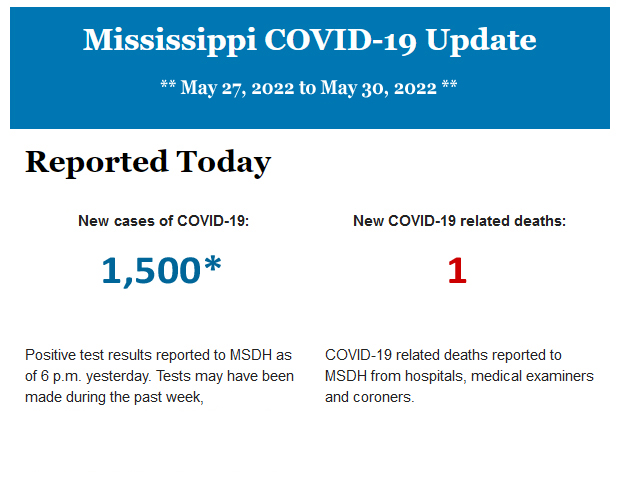 Listed below is the daily COVID-19 update for the state of Mississippi.