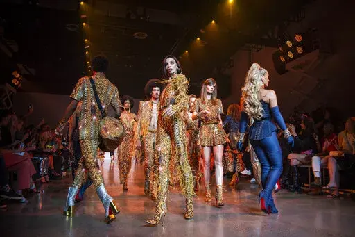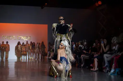 Models twirled down the runway and struck seductive poses to the thumping beats. Rapper Saucy Santana vogued and twerked while performing some of his TikTok hits including “Material Girl.”