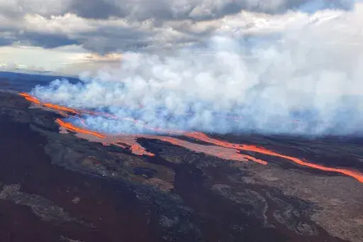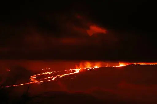 HONOLULU (AP) — Lava is shooting 100 feet to 200 feet (30 to 60 meters) into the air as Hawaii's Mauna Loa, the world's largest active volcano, erupts for the first time in nearly 40 years.