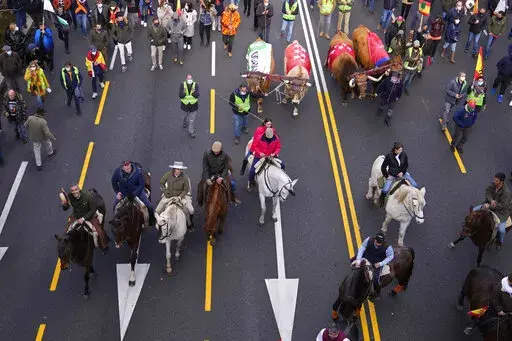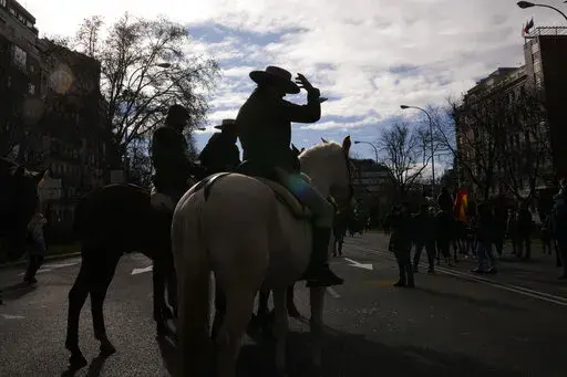 MADRID (AP) — Farmers, cattle-breeders, hunters and opposition supporters descended Sunday on the Spanish capital of Madrid to protest environmental and economic policies by Spain’s left-of-center government that they say are hurting rural communities.