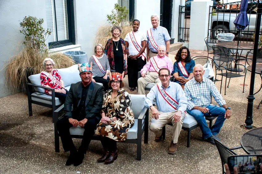 Bill Brozovich and Terri Lane, front have been named the 2024 Hot Tamale Festival King and Queen. They are surrounded by past royalty, counter-clockwise from left, Corrine Goodman, Docia England, Betty Boyd, Netty Seard, Al Brock, Charles Signa, Iris Stacker, Jack Jackson and Lee Engel.