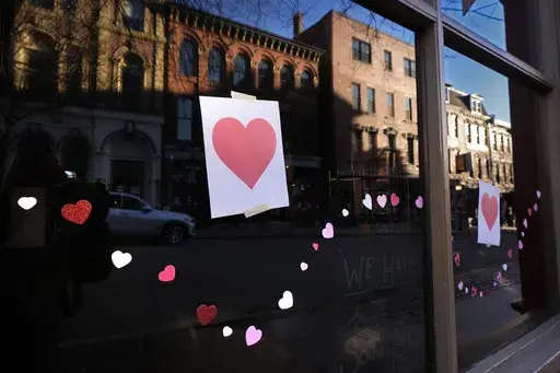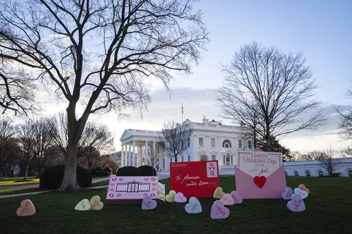 In Washington, D.C., where the vitriol of politics usually reigns, giant fake candy hearts reading “keep the faith,” “reach out” and “be kind" sprouted from the White House Lawn, and pink-and-red paper valentine's greetings covered the walls of the East Landing. One enormous card from President Joe Biden's first lady read, “Happy Valentine’s Day 2024. Xoxo Jill.”