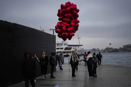 Tradition also had its place. Couples embraced in the shadow of the Eiffel Tower in Paris, viewed by many as the City of Love; posed for a selfie in front of a hotel in St. Petersburg, Russia, where windows were lit to form a heart; or bought heart-shaped balloons from vendors next to the Bosphorus in Istanbul.