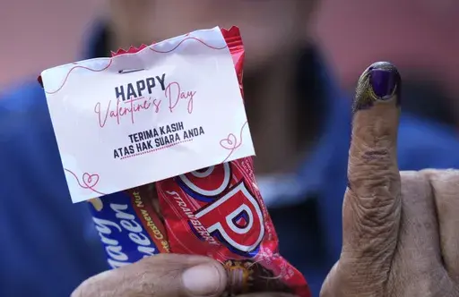 People around the world expressed their love in myriad ways on Valentine's Day: hanging hundreds of paper hearts in the streets to honor a recently deceased “Valentine's Day Bandit" in Portland, Maine; vowing to cherish and obey democracy by casting votes in Valentine's Day-themed polling stations in Indonesia; and donning heart-shaped sunglasses at a victory rally for the Super Bowl-winning Kansas City Chiefs.