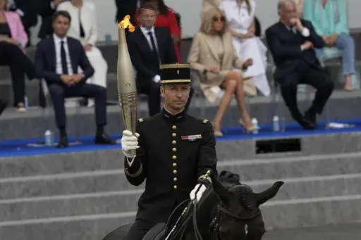 PARIS (AP) — Paris hosted an extra-special guest for France’s national holiday Sunday — the Olympic flame lighting up the city’s grandiose military parade for Bastille Day.