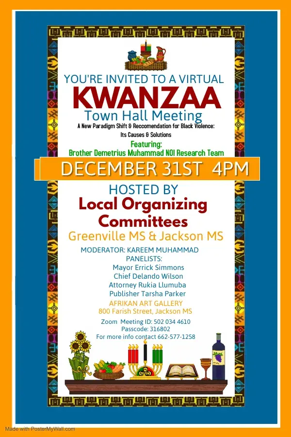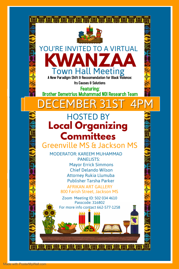 With that in mind, the Local Organizing Committees (LOC) of Greenville and Jackson will host a virtual Kwanzaa Town Hall Meeting set to begin at 4 p.m. on Thursday.