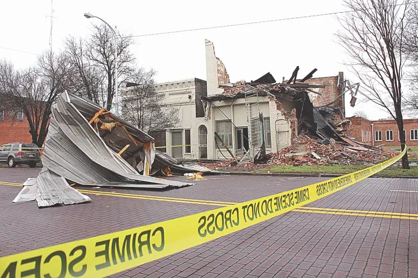 Whatever the storm consisted of exactly, several buildings in downtown Greenville received damage, including an unoccupied former business on Main Street that was reduced to rubble.