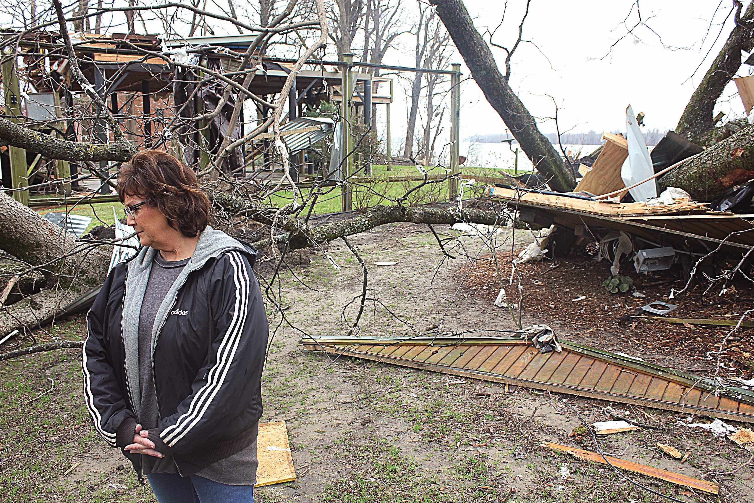 Donna and Clinton Pettiet have a new skylight above their hot tub on the porch of their house on North Lake Ferguson Road. It wasn’t a planned skylight, but when the tornado ripped through their property a week ago, it made its own decisions.