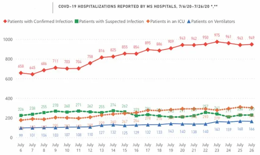 Of the 1,261 cases in Washington County, no less than 150 have been hospitalized and 25 have died.