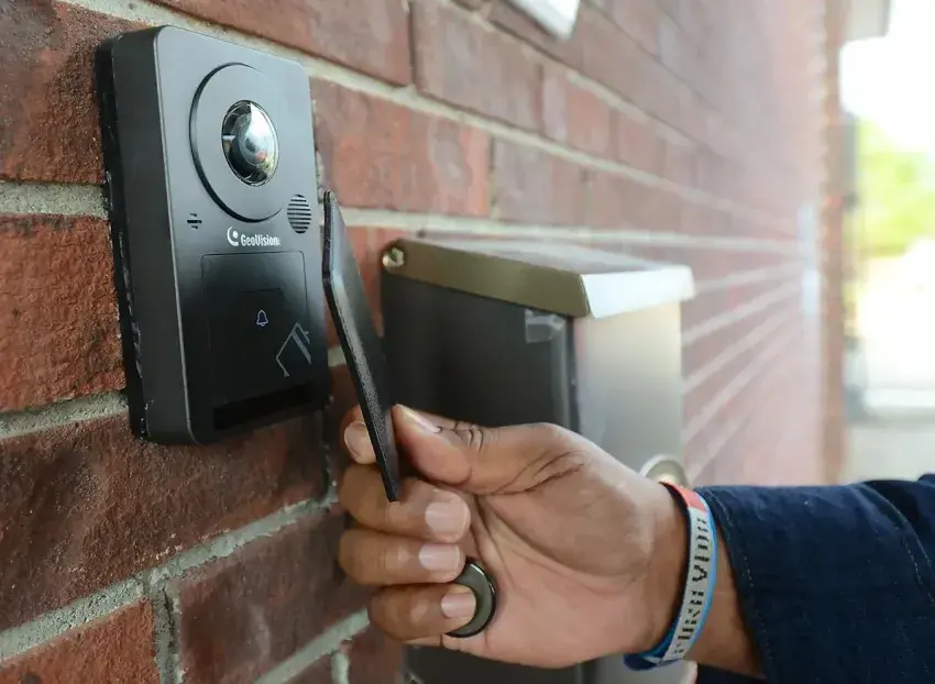 In Covington County, a federal grant allowed the district to install an access control system, which placed keycard locks on exterior doors, and cameras similar to Ring doorbells that secretaries can use to buzz in parents. Only staff have the keycards to open exterior doors from the outside, but a motion sensor on the inside of the door unlocks it for any person exiting.