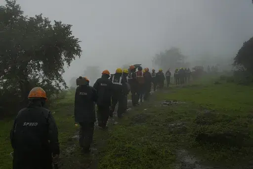 From the base of a hill, it took about 90 minutes to reach Irshalwadi village by foot. Rainfall and a threat of more landslides caused the rescue operation to be suspended during the night the landslide occurred, the rescue agency said.