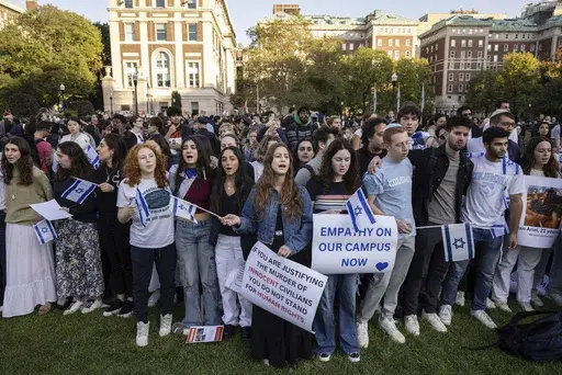 At Columbia University, the campus was closed Thursday as a safety measure as hundreds attended dueling pro-Israel and pro-Palestinian rallies. Some students were angry that a statement from the university president did not go far enough to acknowledge Palestinian deaths.