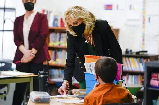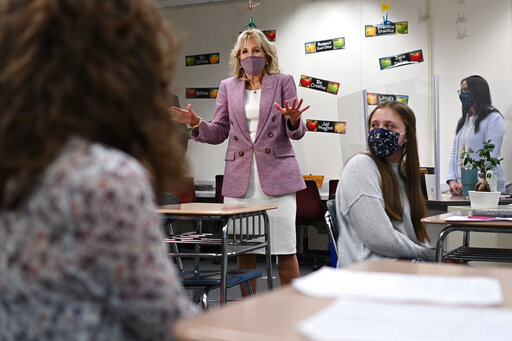 Jill Biden will teach on Tuesdays and Thursdays, with travel on days when she is not in the classroom. Her employer, the commonwealth of Virginia, requires everyone to wear face coverings indoors on Northern Virginia Community College campuses, regardless of vaccination status. The first lady is fully vaccinated.