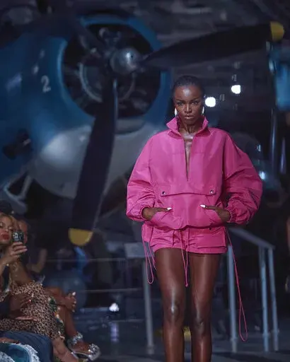 LaQuan Smith used the spectacular setting of a historic aircraft carrier for his fashion show exploring the female form.
