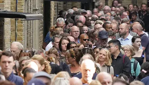 British officials said Friday morning that the organized line was at capacity and no one will be allowed to join it for at least six hours.