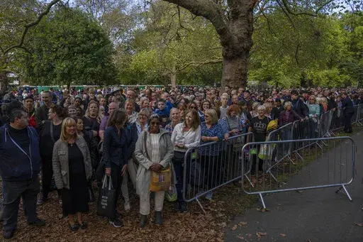 LONDON — Thousands of mourners are standing in line for at least 14 hours to see Queen Elizabeth II’s coffin while she lies in state in London.