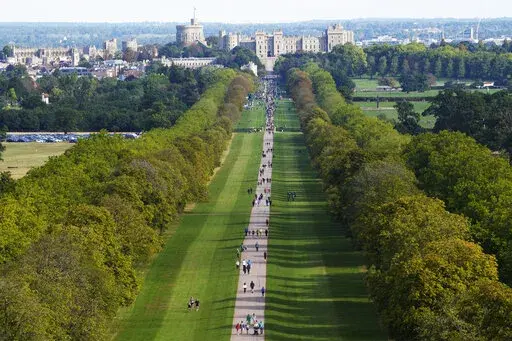 Police officers were dotted along the route along the Long Walk, a 3-mile (5-kilometer) avenue where a walking funeral procession will be held before the queen is laid to rest in St. George’s Chapel.