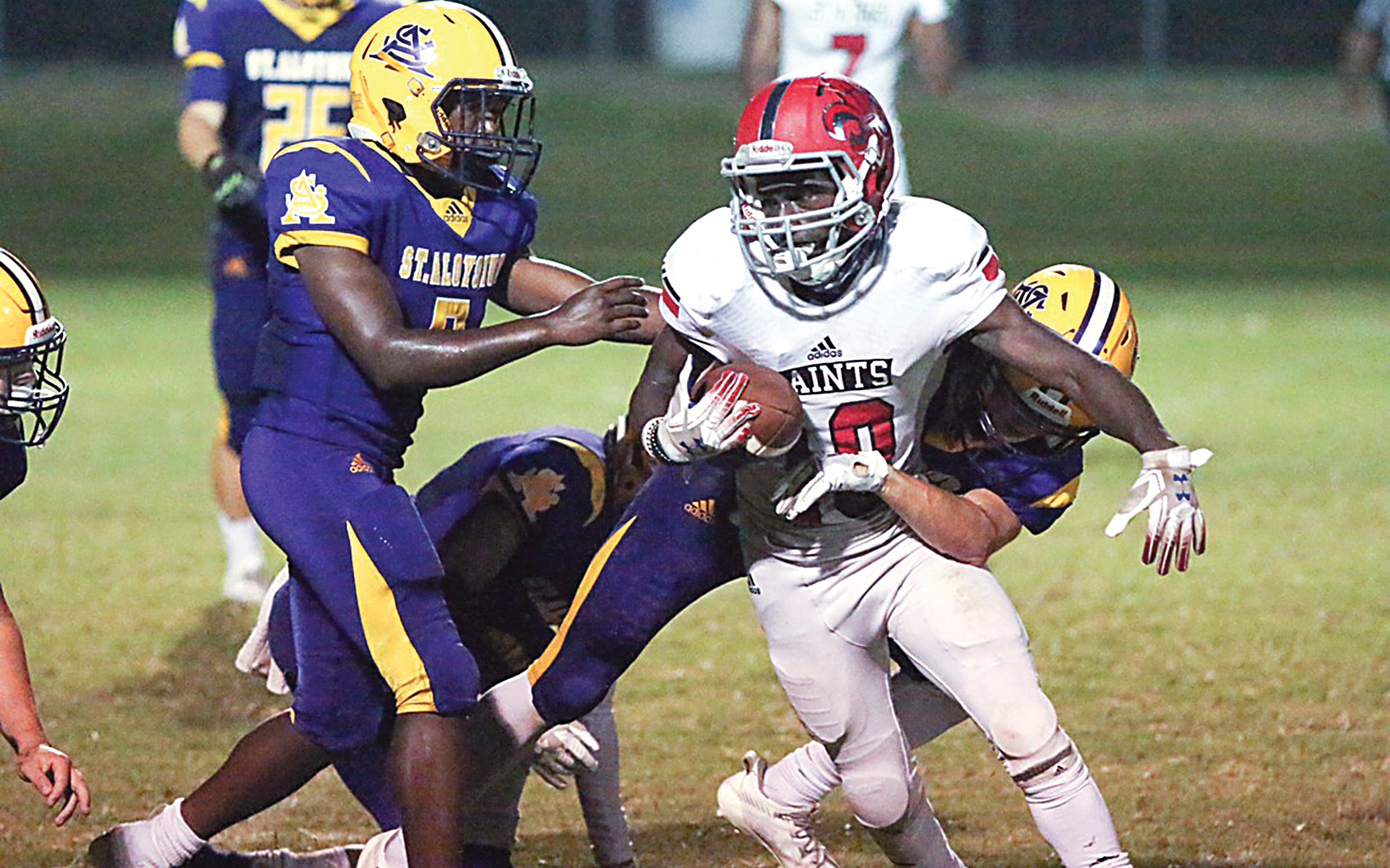 Many of the faces may be new on the Greenville Christian School football team, but Friday night in their 18-3 road victory over St. Aloysius, the Saints proved that they don’t plan to wait long for the victories to start piling up.