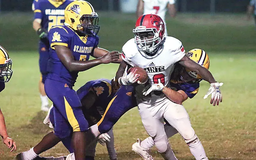 Josh Martin, a transfer from Greenville High School, threw three touchdowns in the Saint victory which moved the GCS’ record to 1-1. GCS receivers Daishun Scott, Vamario McGee and Eric Kingdom each caught a first-half Martin touchdown.