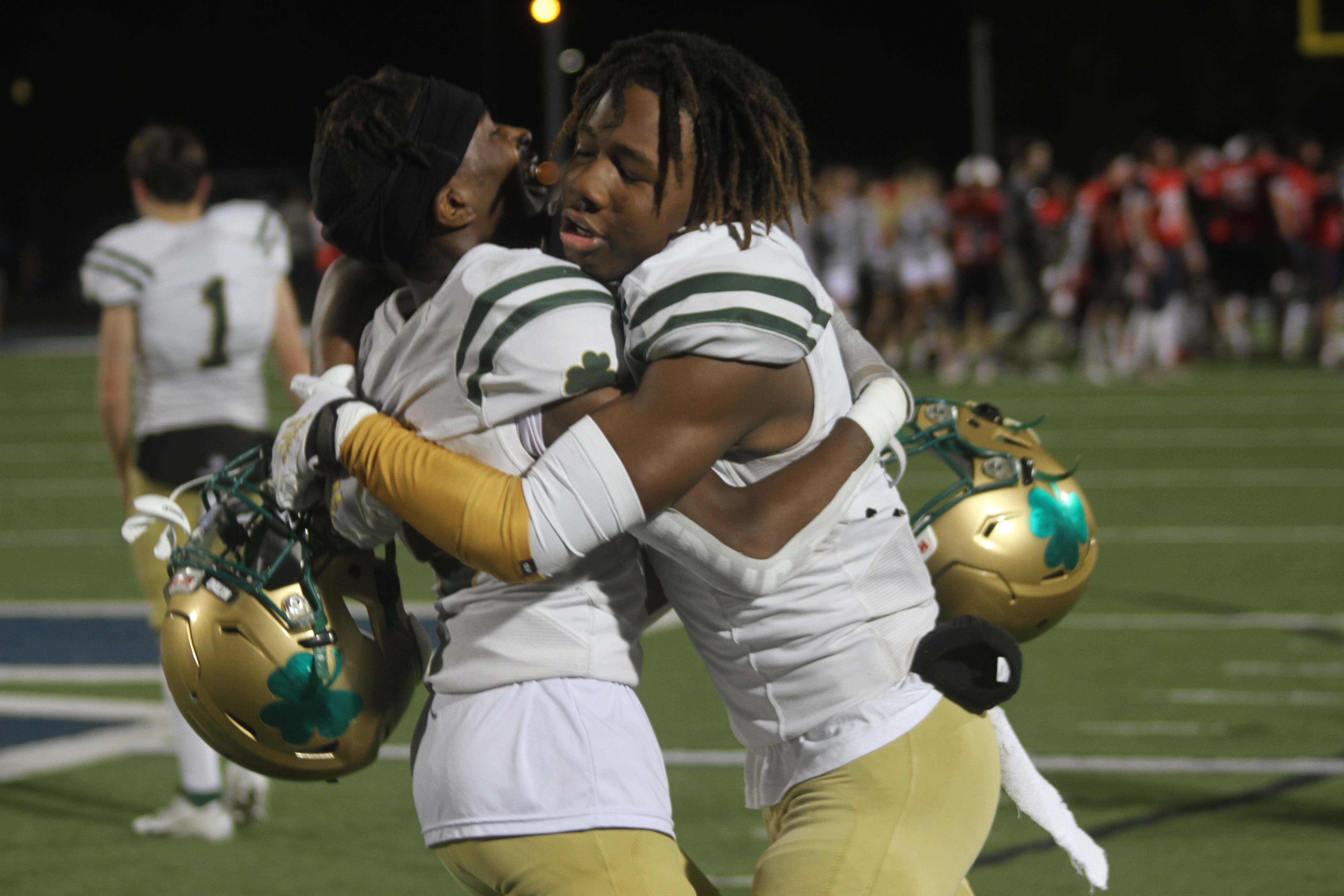 The St. Joseph defense made a number of timely plays in the latter part of the game. Fighting Irish senior Maurice Thorton, for example, intercepted a Kirk Academy pass in the opening moments of the fourth quarter.