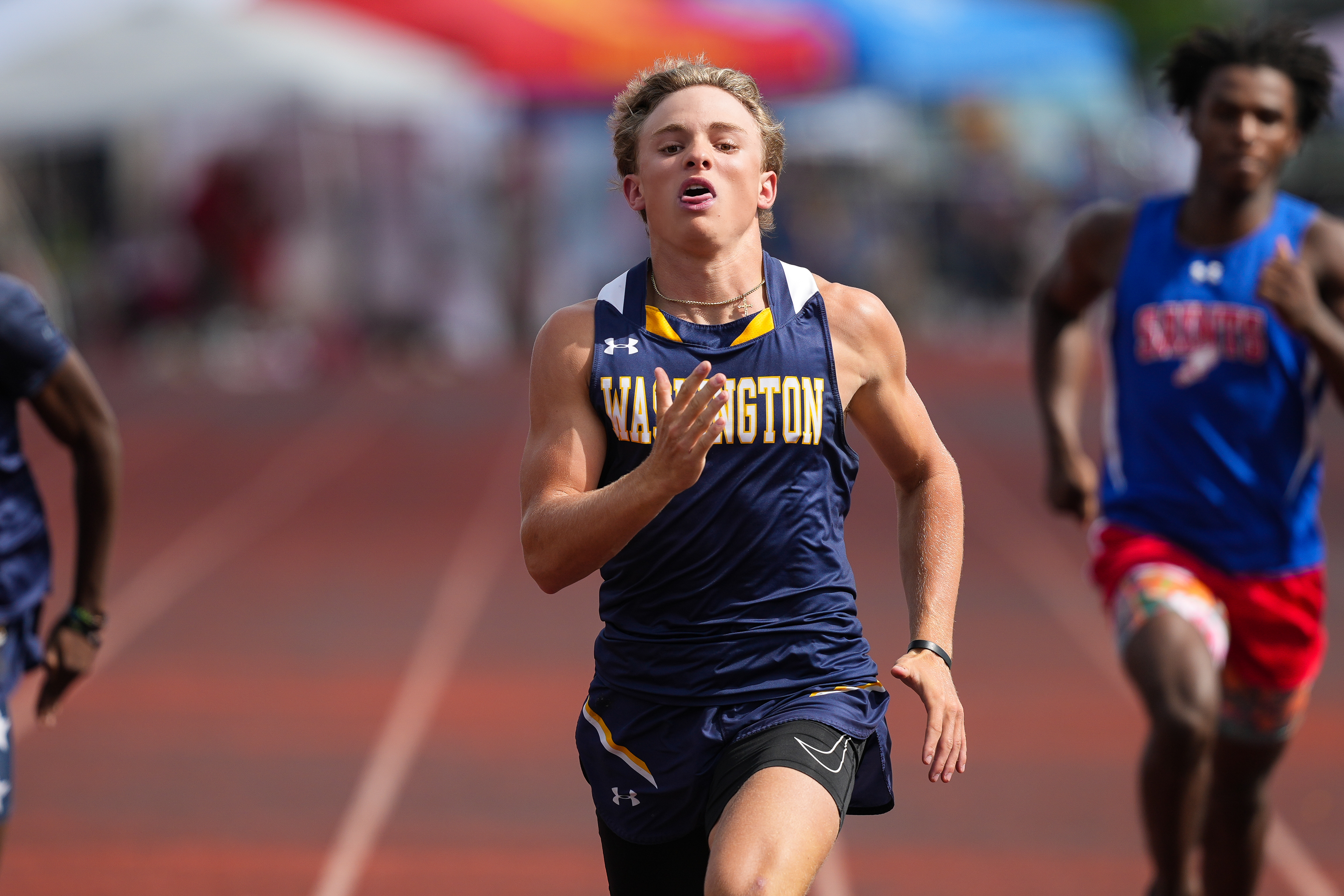 Washington School’s Reid Henderson won a state championship in the 100 meter dash, the 200 meter dash and the 4X200 Relay.