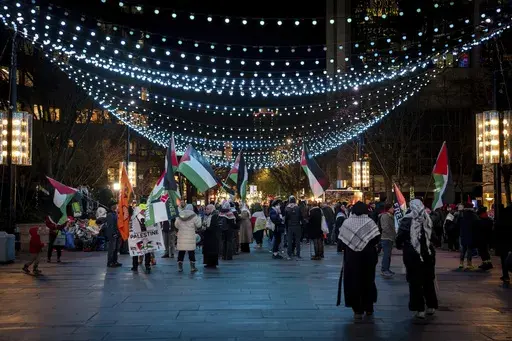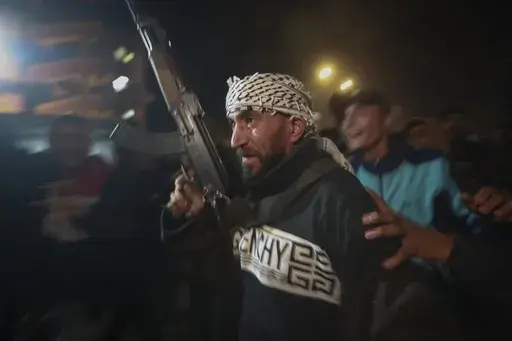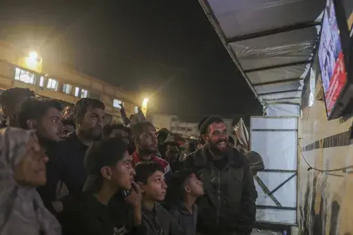 Associated Press video shows the men and women in the city of Ramallah, some holding flags. They also called out the name of Yahya Sinwar, the Hamas leader who masterminded the Oct. 7, 2023, attack on Israel that sparked the war and was killed last year in Gaza.