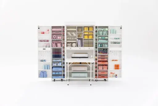 Got a crafter? Solve her storage crisis with the Dreambox. The rolling storage closet is full of adjustable shelving, rods, hooks and boxes. And, to reiterate, it's on wheels so can be stashed when not unfurled. There's lighting built in, along with an adjustable table, with options to add two additional side tables. Comes in two designs in white. Lots of other add-ons are available, like a white magnetic board that can be used to stick metal cutting dies onto. Making dreams come true sometimes doesn't come cheap. The base cost is around $2,500.