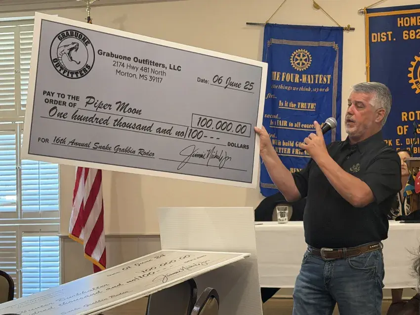 The snake rodeo is set for June 4-6 at Roy's Store on Lake Washington in Washington County. Five bands will perform over three nights, including Good Hope on Thursday, Hurricane and Slow Hand Band — a Conway Twitty tribute — on Friday, and Jason Fertizzi's Dirt Road Jam Band with The Smoke on Saturday. Nichols said food vendors and snake-catching action will draw crowds, with all proceeds benefiting a U.S. Marine veteran needing a modular home and 2-year-old Salem Bennett, who faces multiple surgeries for arthrogryposis.