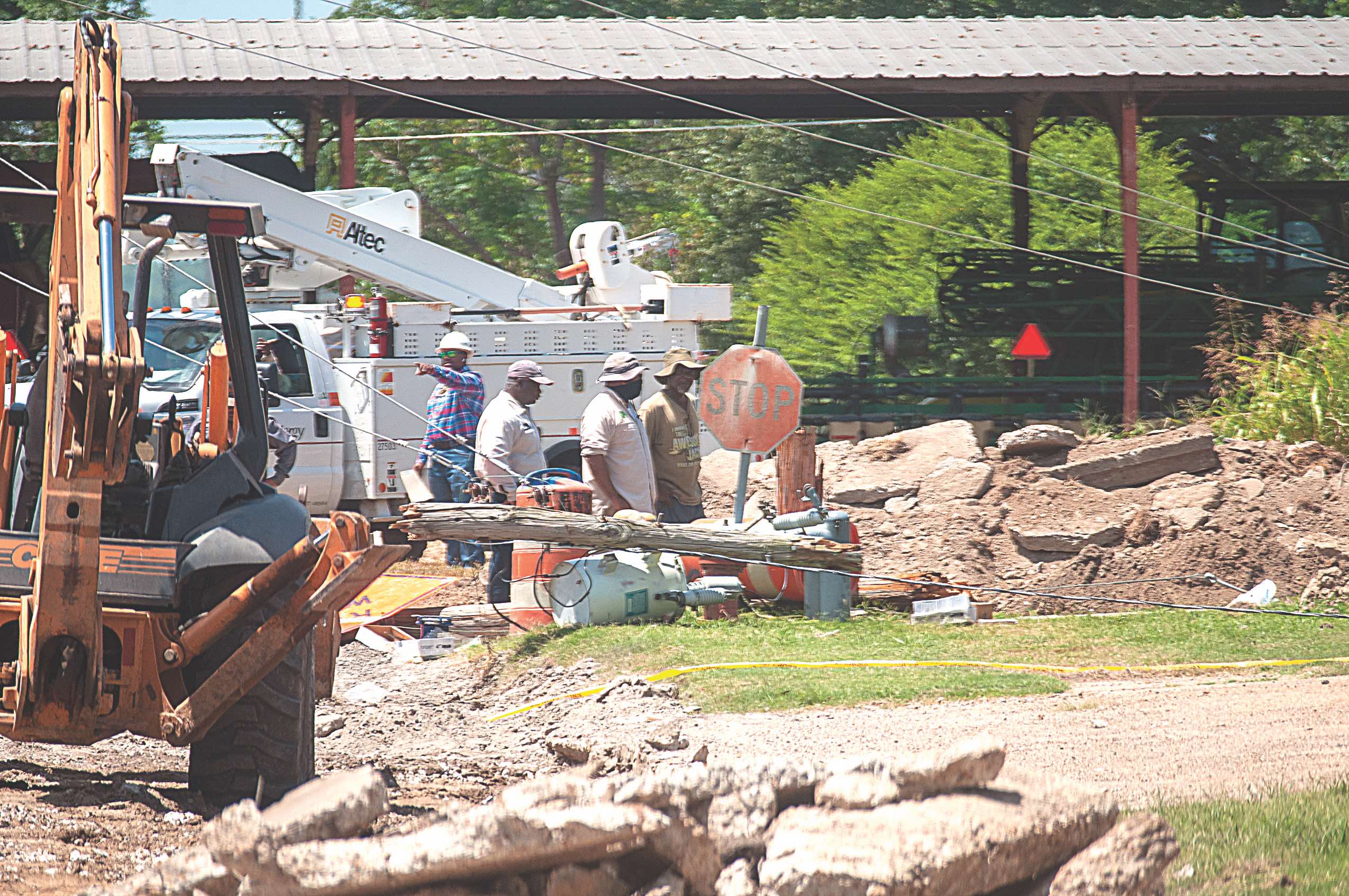 The crew was performing road work on Morgan Street to repair busted pipes beneath the street.