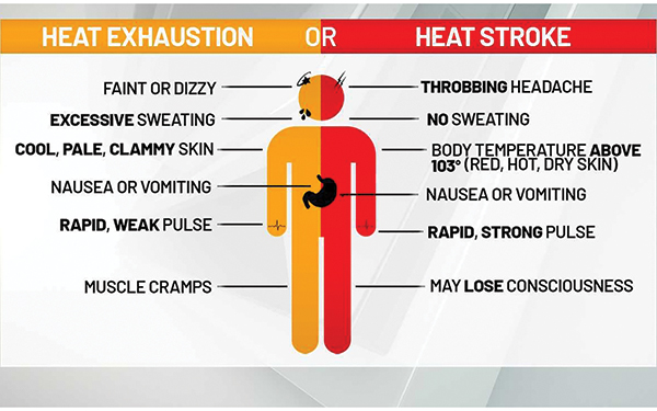 “If you are part of an outside work crew, sports team, make sure you and your coworkers/teammates know the difference between heat exhaustion and heat stroke," she said.