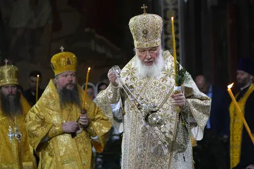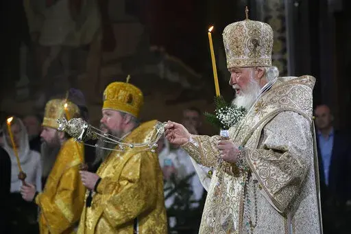 Patriarch Kirill, leader of the Russian Orthodox Church, the world's largest Orthodox denomination, led elaborate services at Moscow's Christ the Savior Cathedral, with dozens of priests and officiants arrayed in rich vestments swinging smoking incense censers and chanting the liturgy.