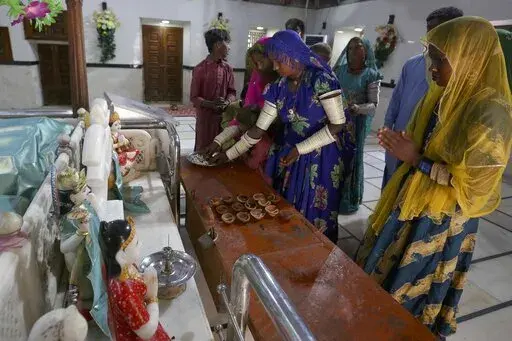 SUKKUR, Pakistan (AP) — On the sandy banks of the Indus River, which flows top to toe through Pakistan and into its southern Sindh province, Hindus waited for brightly colored boats to ferry them to a peaceful island that has housed a temple for almost 200 years.